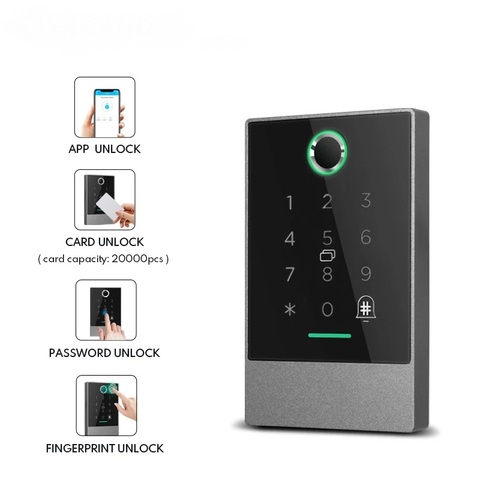 TT Lock แอปสมาร์ทล็อคประตูลายนิ้วมือ IP68การควบคุมการเข้าถึงกันน้ำแบบสแตนด์อโลนปุ่มกด125Khz RFID Card